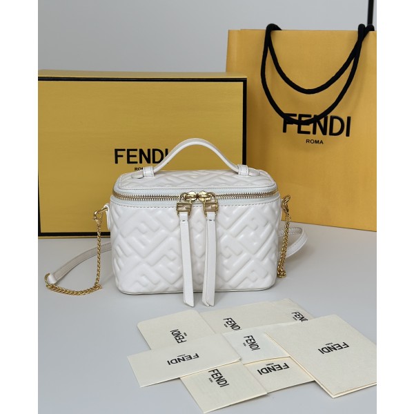 펜디 베니티백 부드러운 나파 가죽에 엠보싱 로고 입체적인 시크, 더블 슬라이드 지퍼 여밈 액세서리 FF 디테일과 가죽 지퍼 패브릭 안감 칸막이로 멋스러움과 용량을 모두 잡아줌
