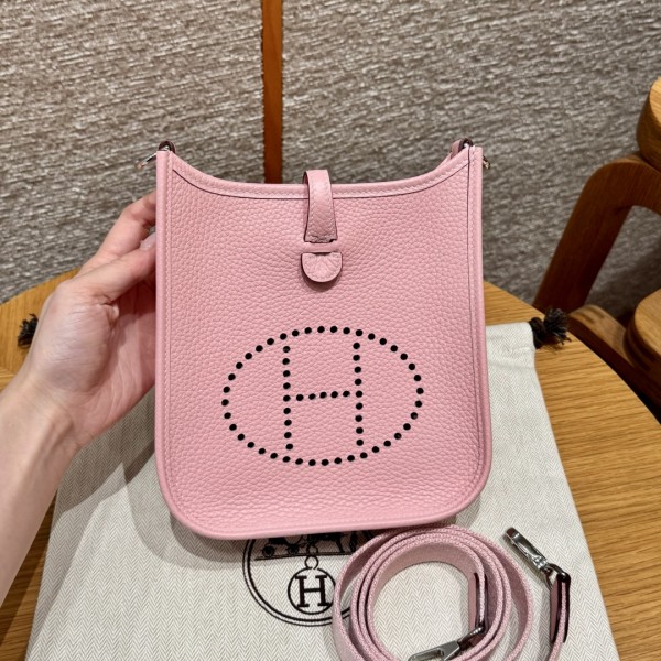 Style:Evelyne Colour:3Q/Rose Sakura Size:16*18*5cm Leather:clemence Hardware:sliver 미니 에블린, 3Q 파우더, 소가죽, 은단추, 고급 수제 맞춤 제작 주문 실사