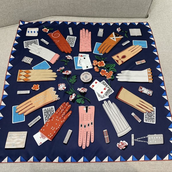 에르메스 장갑 타임 90 큐브 스카프 조나단 버튼(Jonathan Burton)이 설계한 시계 파우더 박스, 포커, 담배 케이스, 알람과 립스틱이 함께 에르메스가 1920년대부터 지금까지 창작한 화려한 악장을 연주함 가죽이나 컬러 스웨이드 장갑으로 세월이 흐르는 것을 지켜보며 제목의 연작을 게재했음 소재: 100% 실크 size: 90×90cm