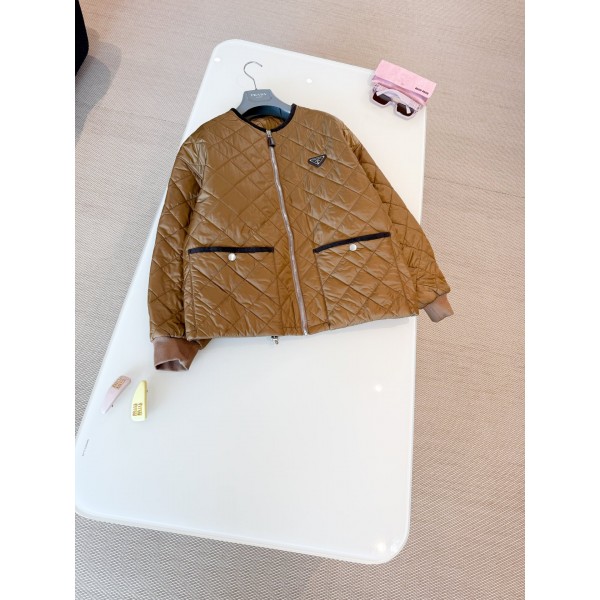 PRADA 25S 체크 패딩 집업 오버핏 재킷 세련된 디테일과 현대적인 비율로 재해석된 아우터 시그니처 재생 나일론 원단의 퀼팅 재킷 모던한 라운드 네크라인과 따뜻한 시보리 소매를 매치