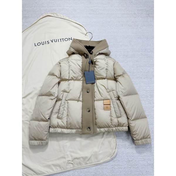LV 퀼팅 후드 다운 점퍼, ZP34000 가벼운 방수 폴리아미드 타프 실크 소재에 모노그램 요소를 가미한 캐주얼한 실루엣의 지퍼 앞주머니를 매치 스트링 후드를 조절하여 스포티한 핏을 연출할 수 있으며 탄성 소매에 똑딱이가 달려 있음 안감 거위털 충전, 여밈은 울 원단 패치 안감은 커스텀 로고 안감