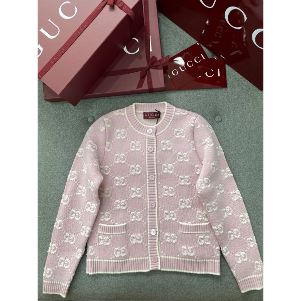 구찌 GG 울부클 융자 가디건 올 가을 겨울 새로운 색상, 쿨톤 체리 꽃가루 원료는 100% 순양모를 사용함 도톰하고 원가도 높으며 무게감이 가득하고 촉감도 부드럽고 편안하며 신축성도 좋고 어디든 잘 어울림 더블G는 순백색이 아니라 연살구색 공기층에 링이 빠진 수건 자카드 공법을 추가해서 두껍고 변형되지 않아 일반 기계로는 정말 할 수 없음 우리는 수입 독일 스톨 기계를 사용했음 모든 것이 정말 고급스럽게 완성되었음