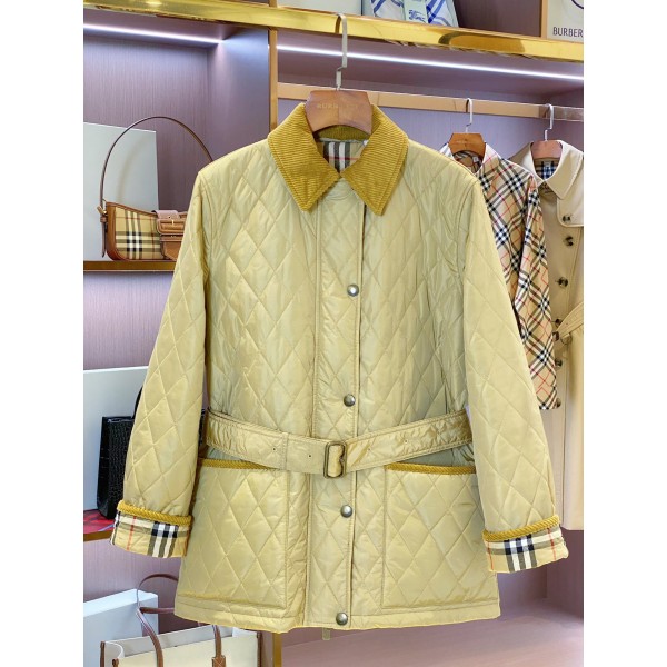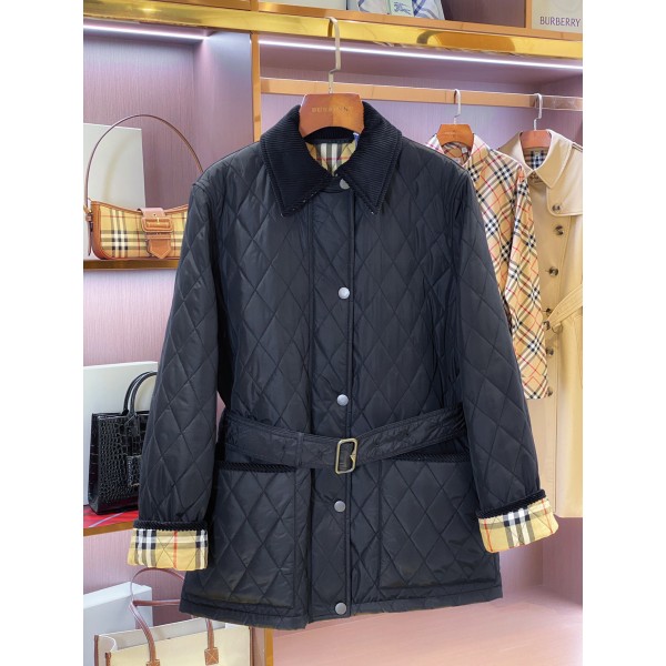 버버리 여성 누빔 나일론 벨트 장식 자켓 버버리 에이스 루트, 모든 버전 압살 고급 맞춤 염색 원단으로 촉감이 섬세하고 매끄럽고 질감이 강하며 육안으로 볼 수 있는 고급스러움이 있음 클래식한 체크무늬 안감이 매우 아이덴티티하여 부드럽고 매끄러우며, 편안하고 통기성이 좋으며 보온과 온도 조절이 가능하여 상체가 매우 편안함 코듀로이 칼라의 질감이 뛰어나고 벨트는 허리를 잡아주어 몸매를 더욱 돋보이게 하며 스냅식 히든 투웨이 지퍼 여밈, 두 개의 패치 포켓이 포함 안감은 클래식한 빈티지 체크무늬를 연출, 디테일 만점