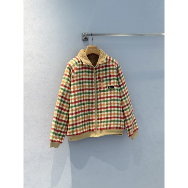 미우미우 25 신상 쇼 동시 출시, 컬러 체크 스웨이드 칼라 점퍼 부드러운 스웨이드 터틀넥과 안감, 가슴 작은 포켓 로고 체크무늬와 스웨이드 요소를 조합하여 여성스러운 느낌을 연출 수입 yb면 모직 소재를 재정의하고 울 혼방 소재를 엄선하여 체크무늬가 섬세하고 힘있게 짜임 스웨이드 칼라 특수 처리, 오버사이즈 컷팅으로 무난함 볼륨감과 피부 친화력이 우수하며 보온성과 스타일링을 모두 고려 각각의 스티치와 메탈은 MIU의 고정 공법을 이어받아 실속과 럭셔리를 동시에, 초가을 최신 아이템