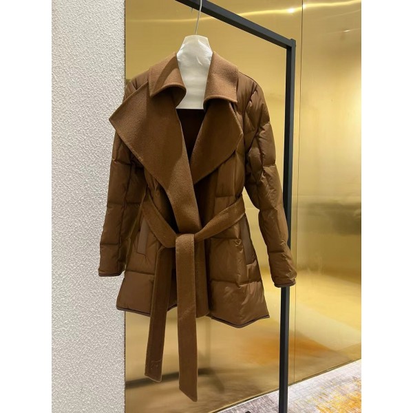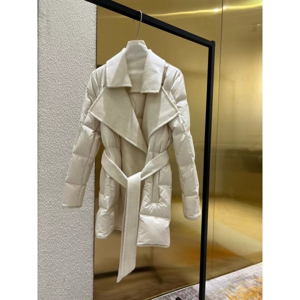 LP 미니멀 구스다운 패딩 코트 100% 수입 호주 울니 + 뉴질랜드 양가죽 트리밍 뉴질랜드 90 화이트 구스다운 하프 기장, 벨트 여밈 디자인 따뜻하고 슬림해 보이는 필수 아이템