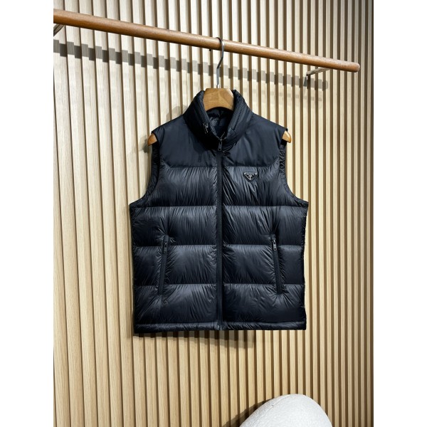 프라다 남성 25 신상 삼각 고깔 패딩조끼 겉감: 프라다의 클래식한 나일론 소재로 내마모성, 주름성, 바람막이성, 가벼운 질감으로 표면에 섬세한 체크무늬가 있어 시각적 층위와 질감을 향상시킴 충전재: 90%의 흰 오리털이 충전되어 있으며 볼륨이 높고 보온성이 우수하여 추운 날씨에도 따뜻함 안감은 면 100% 안감으로 되어 있어 피부 친화적이고 편안하며 착용 시 피부 감촉을 높여줌 메인 지퍼와 포켓 지퍼 모두 프라다 맞춤형 지퍼 52사이즈: 어깨44 기장66 가슴둘레116