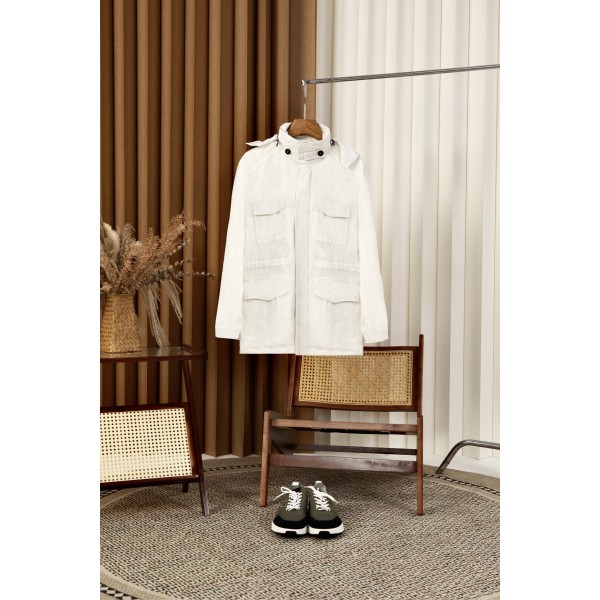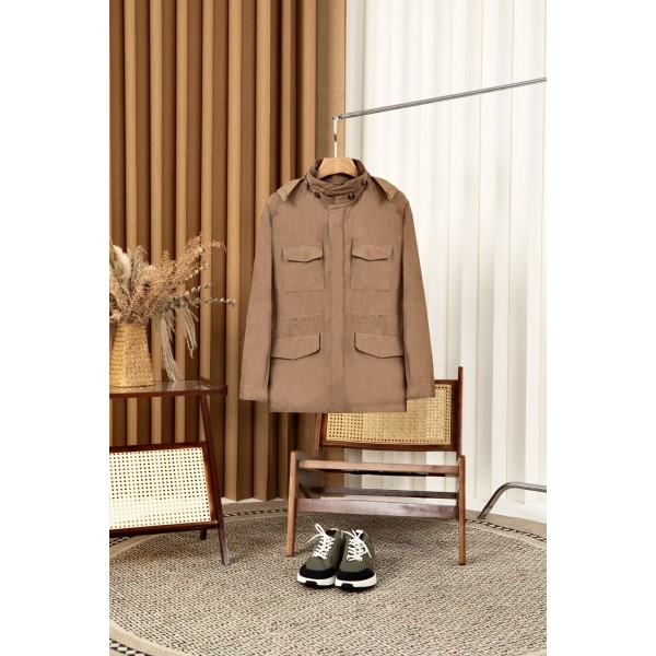 LP 트래블러 남성 야상 린넨 사파리 자켓 독특하게 가볍고 캐주얼한 주름을 우아한 리넨으로 연출 워싱 처리로 부드러운 터치감과 매트한 외관을 완성 재킷은 재단 라인이 매끄럽고 디자인이 심플하면서도 세련됨 4개의 자석 스냅 플랩 포켓은 소매 조절이 가능하며 전면에는 양방향 지퍼와 자석 스냅 여밈이 장착되어 있음 안감 없이 뿔단추의 일반적인 핏으로 허리 스트링 조절이 가능함 100% 린넨 소재를 사용하여 내추럴함과 편안함의 완벽한 조화