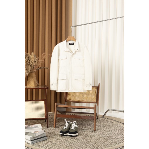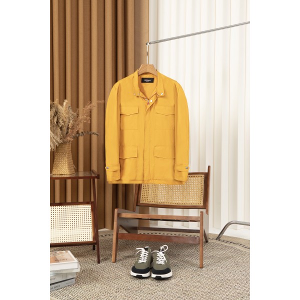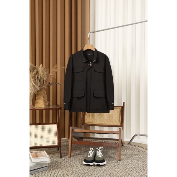 키톤 스탠드 칼라 트리밍 트렌치 재킷 칼라 뒤의 가죽이 포인트, 깔끔하고 우아한 라인 소재 선택에 있어 Kiton은 변함없이 높은 품질의 기준을 유지함 고품질의 원단을 엄선하여 부드럽고 편안한 촉감을 제공하며 통기성과 방풍성이 뛰어나 착용하는 동안 항상 보송보송하고 자유로운 상태를 유지할 수 있음 정교한 커팅과 제작 공정은 모든 세부 사항을 완벽하게 보장함