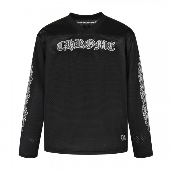 크롬하츠 메쉬 긴팔 아이스 하키복 오리전ㄹ 5,500에서 구입해서 제작 원단은 220g의 고밀도 100D 폴리 스판 혼방 원단인 조안 속건 소재를 사용하고 칼라 조각은 전자동 컴퓨터 재단기 레이저 스파크 컷팅 40초 면사 횡판기는 편직기 넥의 실타래를 뽑고 순수 수작업으로 곡선을 다듬고 이층 선반 공법을 사용함 컴퓨터 스캐닝 및 인쇄 필름은 수동 스크린 인쇄를 사용하여 복합적으로 만들어지며 원색 특수 색상에 따라 동일한 색의 펄프 재질을 사용하고 침투성 평면 스크린 인쇄를 채택하고 안료가 직물의 섬유에 침투함 맞춤 제작 마크로고, 세 가지 보조 재료 세트가 완비
