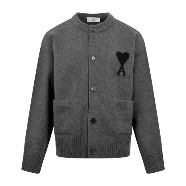 아미 파리스 하트 쟈가드 모직 카디건 고급스러운 텍스쳐의 부드럽고 섬세한 밀착력으로 고급스러운 그레이 컬러를 먹으로 차분하고 부드럽게 가슴에 묻어나는 하트 위에서 조용히 매혹적인 후광을 발산함 독일 수입기 자카드 조직으로 실의 배열과 얽힘을 정밀하게 제어하여 직조기에서 정성스럽게 엮어낸 Ami 사랑의 자카드 아트 패턴 상감 직물이 더욱 생동감 있고 입체적 의복 세탁 및 부드러운 탈취 공정은 전문 세탁 장비와 특정 세제를 통해 의류를 심층 세척하고 탈취하여 의류의 촉감과 외관을 개선함