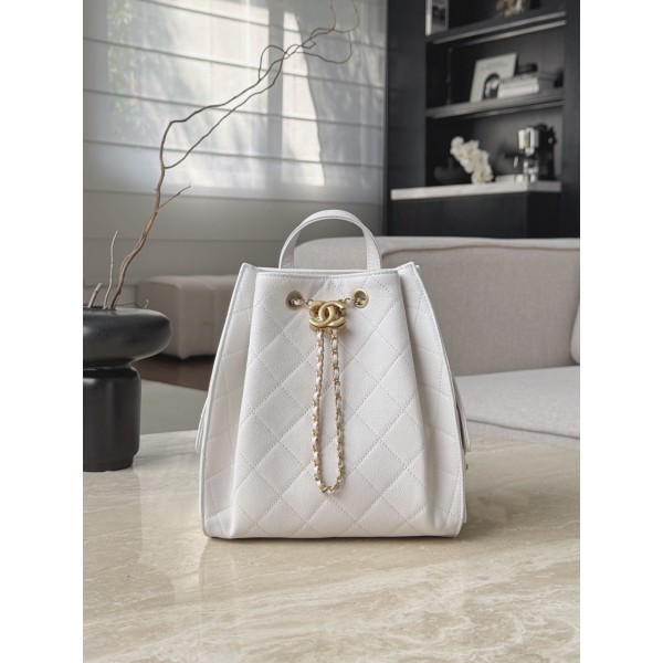 샤넬 25 미디엄 백팩 정말 캐비어 화이트 깔끔하고 매끄러운 가방라인에 세련미를 더해주며 손에 쏙 들어오는 모던함 모델번호: AS5600 사이즈: 23x23x14cm
