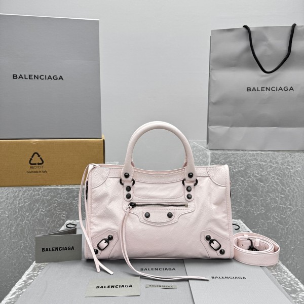 발렌시아가 LE 시티 모터백 스몰 클래식한 크랙 오일 왁스 가죽은 브랜드의 독특한 취향을 표현함 시간이 지남에 따라 광택이 나는 가죽으로 매력을 발산함 클래식한 스터드와 브론즈 지퍼 요소 빈티지하고 스타일리쉬한 룩, 대용량 초능력 룩 캐주얼한 장소에서 포인트 아이템으로 활용해도 좋음 사이즈 : 30x19x10cm