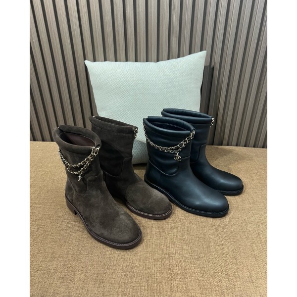Chanel 25B 가을/겨울 신상 체인 펜던트 앵클부츠 펜던트, 체인 매치로 가을 겨울 분위기 물씬 겉감: 이태리 수입 송아지 가죽/스웨이드 안감: 수입 혼종 양가죽 메탈: 14K 골드 도금 밑창: 이태리 A급 리얼 가죽 밑창