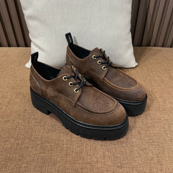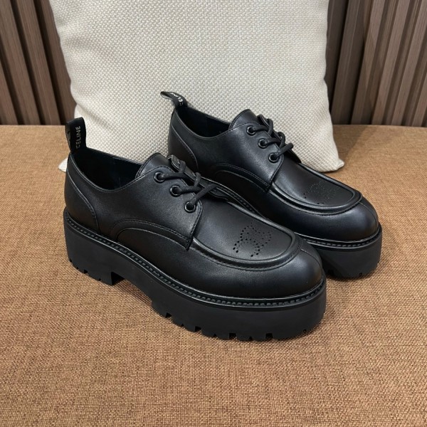 셀린느 가을 겨울 신상 빈티지 모던 더비 슈즈 클래식한 개선문 자수 로고, 빈티지한 구제 가죽 가을과 겨울 분위기 물씬 앞면은 광마유 라일락 이태리 소가죽으로 되어 있고 안쪽 블랙 무광 양가죽으로 피부 친화적이고 통기성 있게 단독 몰드 오픈 TPU+PU 콤비 밑창 리얼 가죽 엣지 밑창두께: 5cm