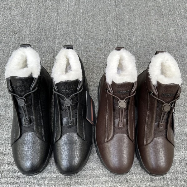 [에르메네질도 제냐 트리플 스티치 베타 럭셔리 부츠 오아시 제냐(Oasi Zegna)의 트레킹 코스에서 영감을 받아 앵클부츠 디자인과 트레킹화, 스니커즈 스타일을 절묘하게 결합 엄선된 알갱이 표면 송아지 가죽 신발 표면 핸드 스티치 3중 크로스 밴딩, 발목 끈 조절 뒷면 기능 링 장식, 굽 장식 제냐 232번 도로 브랜드 로고 올 양털 안감 깔개 겨울 나들이용 방한용, 전용 코너 패키지