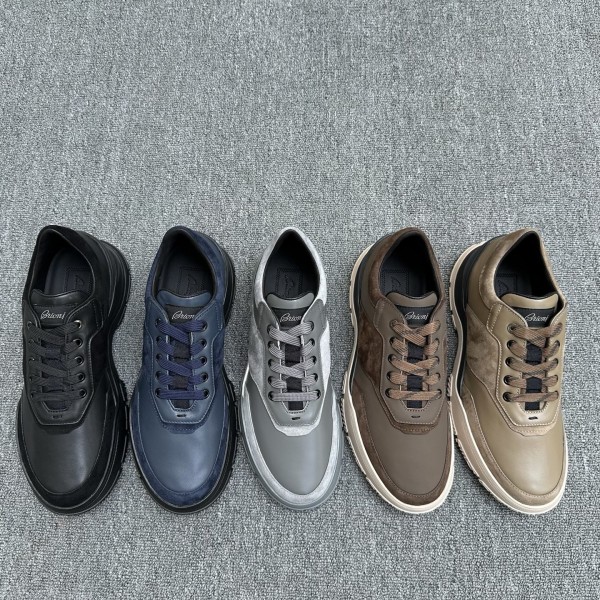 Brioni 공식 웹사이트 동시 판매 남성 스니커즈 하이브리드 러닝화, 일체형 디자인 Brioni 스티치 라벨 나파가죽 사이드 리본과 브랜드 클래식 군단 스트라이프 경량 콤비네이션 쿠셔닝으로 고급스러운 스타일링을 완성함
