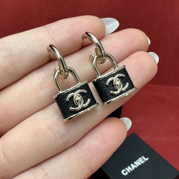 Chanel 25A 프리미엄 핸드메이드 라인의 자물쇠 귀걸이 블랙 양가죽+메탈 자물쇠 디자인 전면 듀얼 C Logo로 인식도 뛰어남 컴팩트하고 세련된 스톱오버를 잡아주는 당신의 아름다움 달콤하고 시크한 스타일 만점