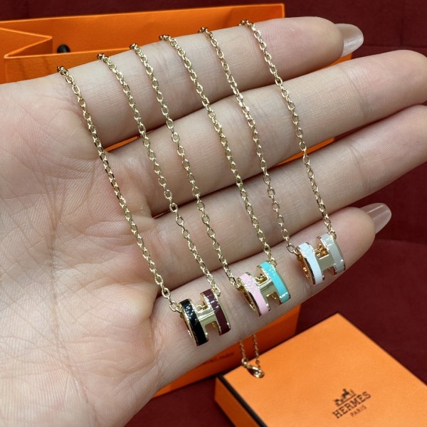 Hermes Mini Pop H 에나멜 메탈릭 에나멜 목걸이 투톤 컬러의 디자인으로 세련되고 클래식한 H를 새롭게 연출 심플하고 우아하며 고급스러움 컴팩트한 사이즈로 피부톤에 구애받지 않고 화사하고 세련되게 연출가능