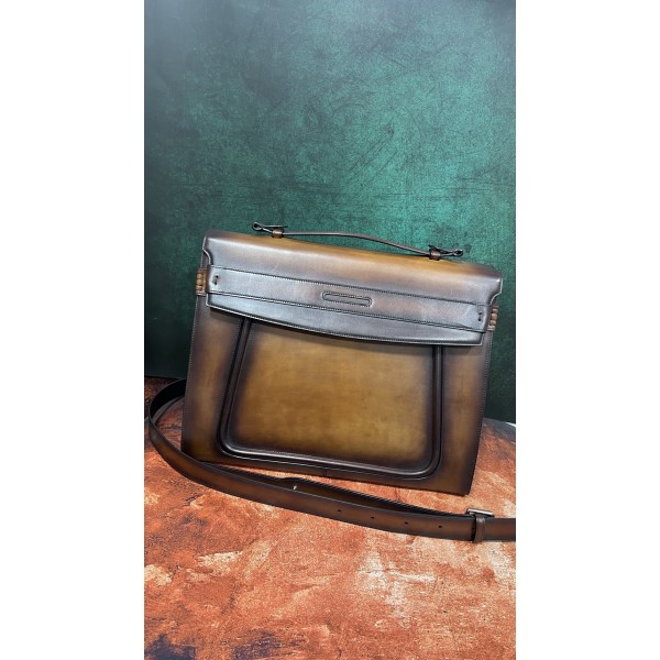 BERLUTI 앤디 메신저 서류가방 앤디 모카신 슈즈처럼 롤업하여 개성있는 스타일을 연출 이 서류가방에서는 가장자리가 핵심 장식 요소로 진화했음 외부 특징: 전면 가죽 스트랩 디자인과 아이코닉한 앤디 로퍼 구두 디테일이 조화를 이루고 버클 플랩 클로징, 사이드 스티치 디자인, 탑 토트로 크로스 가능 내부 특징: 지퍼 포켓 하나로 자카드 문양 안감 사이즈: 높이32-가로41-두께16cm