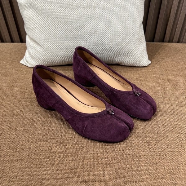 MM6 타비 시리즈 전체 바닥은 수입 소가죽 소재로 되어 있음 소재에 따라 표현되는 질감과 스타일도 다름 굽: 3.5cm