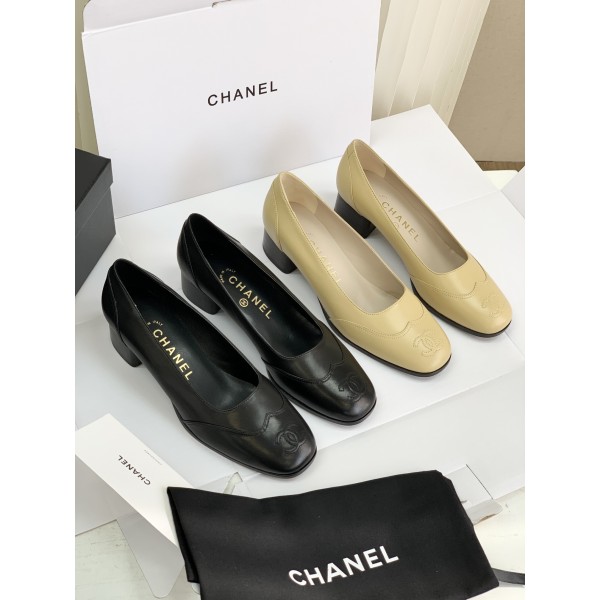 샤넬 최고급, 공식 홈페이지 동시 2025 매장 윈도우 신상품 사각 라운드 통굽 펌프스 겉감 수입 염소 가죽 안감 깔창 혼종 양가죽 부드럽고 섬세하며 이태리 오리지널 리얼 가죽 밑창 굽 5cm