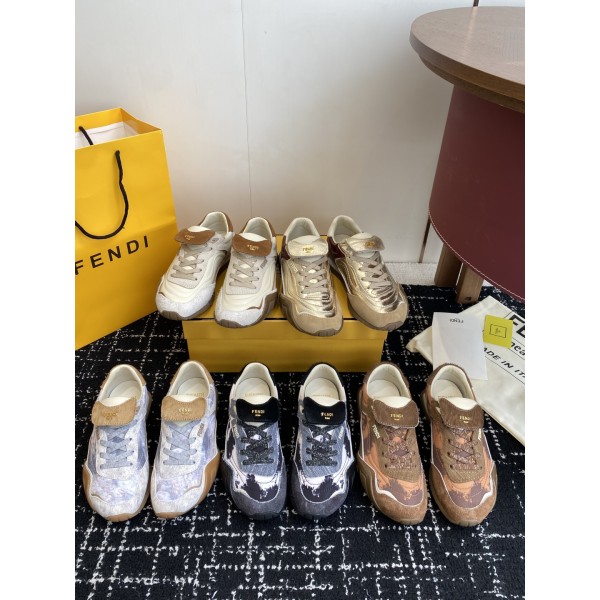 펜디 업그레이드된 25 뉴 컬러 시리즈 최신 FENDI 웨이브 펄스 스트랩 로우탑 스니커즈 하이테크한 원단, 잉크젯 디자인 아트 캔버스 밟는 듯한 빈티지하고 고급스러운 스판 신발 끈 밀착감 있고 발에 감싸는 느낌이 끝내줌 고무 러닝화 바닥, 하루 종일 폭주해도 지치지 않고 편안함 겉면: 스크럽 소가죽 안감: 양가죽 안감