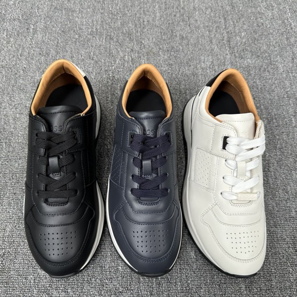 휴고 보스 남성 신상 가죽 로우탑 스니커즈 완산 최고급 제품, BOSS 스트랩 스니커즈 소가죽의 섬세하고 광택, 손 광택 처리 손으로 만져도 가죽의 실키한 느낌, 송아지 가죽 발받침 부드럽고 편안한 통기성, 측면 및 신발 및 혀 장식 BOSS 로고 신발 끈 장식 로고, 뒤꿈치 랩 처리 eva 발포 + 미끄럼 방지 및 내마모성 고무 콤비