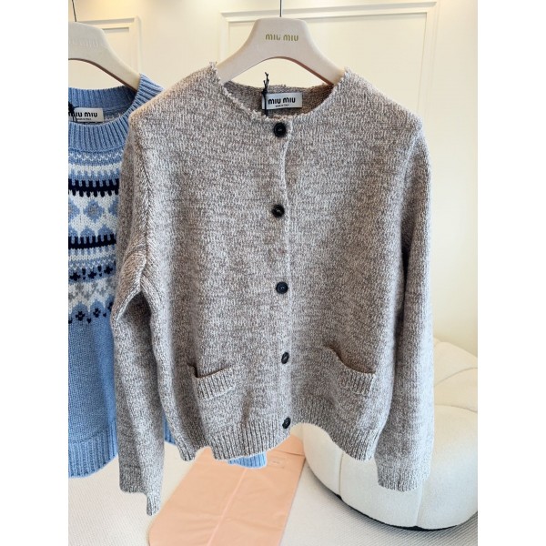미우미우 2025 가을/겨울 신상 꽃사 니트 카디건 맞춤사, 100% 울 소재 섬세한 꽃사 결로 가을/겨울에 입기 너무 편해요 라운드넥+블랙버튼으로 심플하면서도 세련되고 투포켓으로 실용적이고 포인트도 있으며 컬러가 세련되고 무난하며 통근 캐주얼에도 잘 어울림 나른하고 캐주얼한 스타일링
