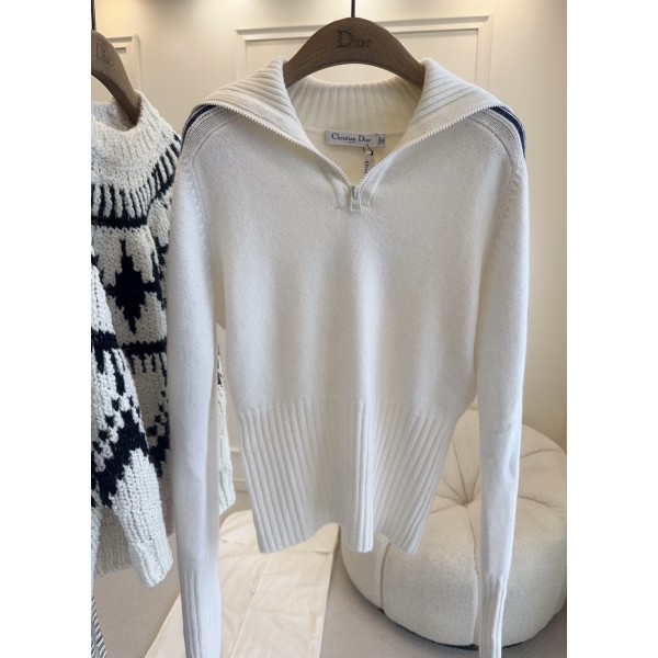 Dior Alps 스키 컬렉션 니트 스웨터 캐시미어 울 소재가 부드러워서 가을과 겨울에 입기 편하고 터틀넥 + 반집업 디자인으로 복고적이면서도 실용적 스트라이프 컬러로 활기차고 베이지 컬러로 매치하기 좋으며 알프스 스키에서 영감을 받은 Alps 라인은 스타일리시하면서도 기능적인 겨울 옷장의 필수 아이템