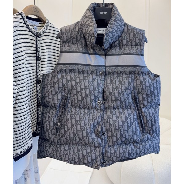 Dior 2025 가을과 겨울의 새로운 스키 시리즈 패딩 조끼 클래식한 Oblique 자카드, 절제된 럭셔리함이 가득 등판 레터링 로고 자카드 스트랩 더블 지퍼 포켓, 지퍼, 버클 맞춤 제작 멋스럽고 트렌디한 스타일링