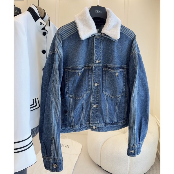 Dior 2025 가을/겨울 신상 Alps 시리즈 램스울 칼라 데님 코트 클래식한 데님 + 탈부착 가능한 램스울 칼라로 복고풍스럽고 실용적이며 옆선 스트라이프 디자인 가을/겨울 스타일링에 구애받지 않고 일상적인 통근과 캐주얼에도 쉽게 소화가능 편안하고 활기차 보입