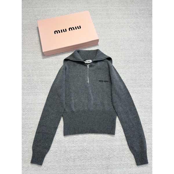 MIUMIU 빅 터틀넥 캐시미어 스웨터, ZP17300 캐시미어 실 맞춤, 고급스러운 색상 독일제 7.2기 영문 레터링, 루즈핏 와이드 칼라 디자인으로 스타일리쉬한 룩을 연출하여 현대적인 스타일링을 완성해줌