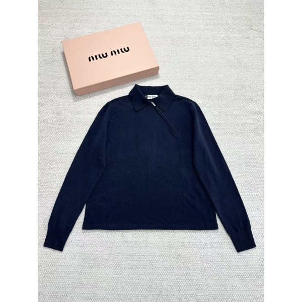 MIUMIU 사선지퍼 니트 캐시미어, ZP19300 클래식한 옷장의 필수 아이템, 캐시미어 폴로 셔츠입 지퍼 클로징 디자인은 현대적인 요소를 도입하여 끊임없이 변화하는 여성의 매력을 보여줌 14핀 편직으로 연령에 구애받지 않고 착용감이 편안함