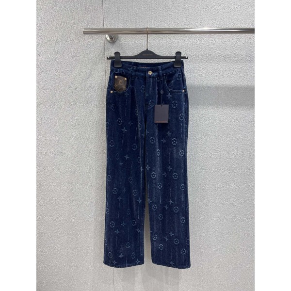LV 25 가을/겨울 신상 자카드 밍크 데님 스트레이트 진 인디고 워싱+내추럴 스크래치 소프트하면서도 힘있는 데님 소재 클래식한 모노그램 요소+스타 로고 톤온톤 밍크 자카드 표현 톤다운된 텍스처로 고급스러운 광택감 숨김 뒤허리 가죽 로고+메탈 버튼 작은 디테일로 포인트를 주어 노출 없이도 고급스러움