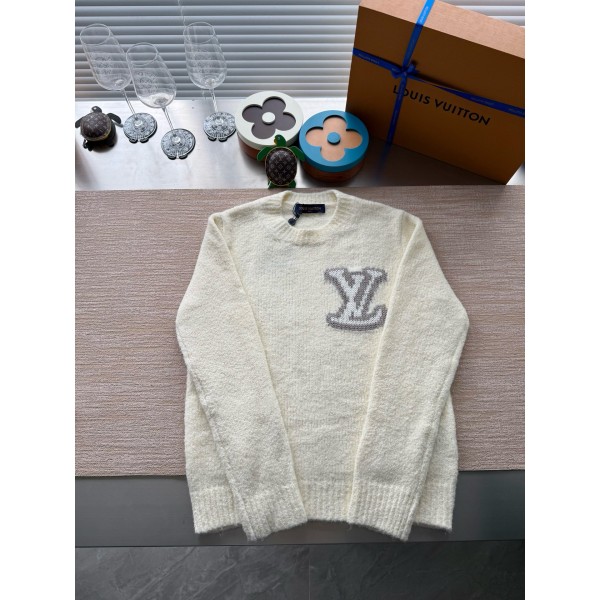 Louis Vuitton 25F 자카드 라운드넥 스웨터 ZP 12200 구매 분해 제작 맞춤 제작 울 혼방 소재, 앞뒷판 장식 LV 레터링 로고 자카드 디자인 자카드 원단과 어우러지게 제작 시그니처 골지 소매 밑단 맞춤, 초밀도로 부분 짜임 진정한 1:1 재현