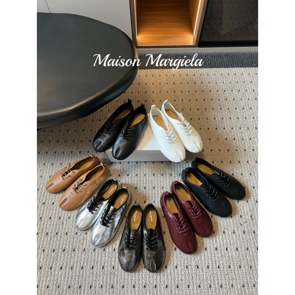 메종마르지엘라 클래식 토 플랫 슈즈 신발 표면은 섬세한 가죽이며 일부 스타일은 금속 광택이나 질감이 있어 디테일이 고급스러움 신발 안에는 브랜드 로고가 있어 조성이 통일되어 있음 겉감: 소가죽/양가죽 안감: 폴라폴리스 밑창: 리얼 가죽 밑창 키높이: 2cm