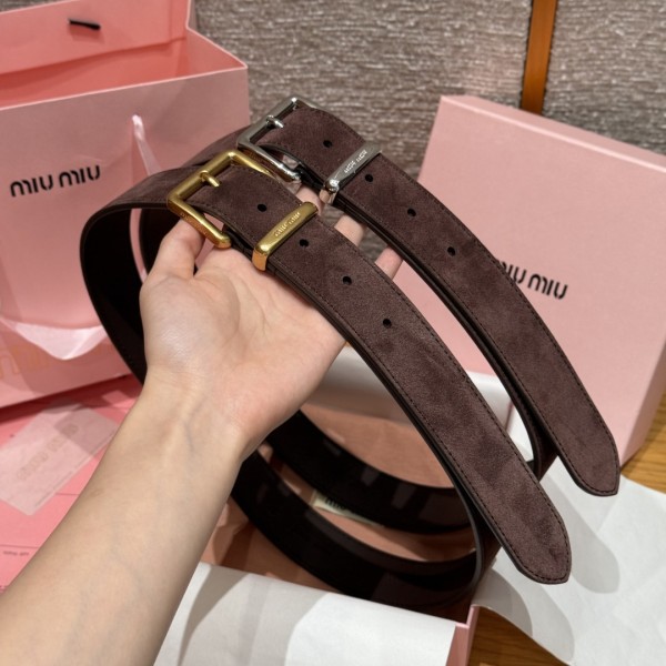 미우미우 신상 여성 반짝이 벨트 앞면의 스웨이드 디자인과 뒷면의 매끄러운 소가죽으로 제작 로고 레터링이 돋보이는 메탈릭 로고와 핀버클 부드러운 촉감의 송아지 가죽 스커트 바지 모두 잘 어울림 폭: 35mm