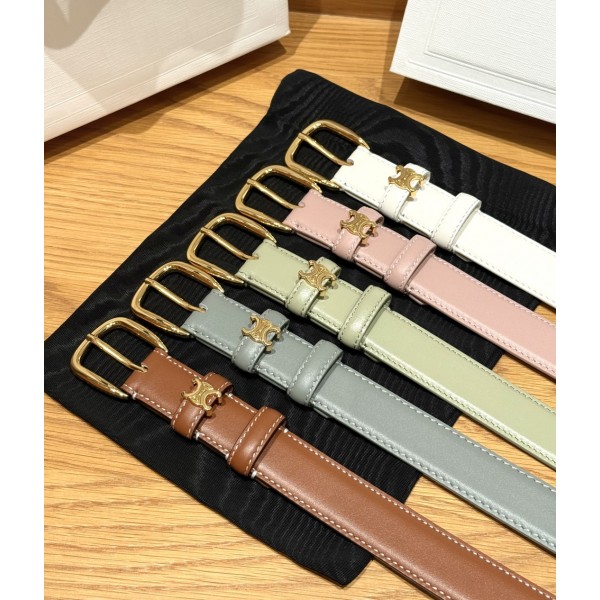 셀린느 25mm 여성 가죽 벨트 TAURILLON 가죽으로 소가죽 라이닝 미드웨이스트, 골드 장식 라운드 버클 등 하나의 링으로 트리오페 메탈 링을 감싸고 있음