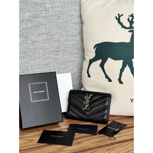 생로랑 엔벨로프 반지갑 정품개발 수입 송아지 가죽 캐비어 수입소가죽 별도 제작 철물함 안쪽 4칸 원단 품질, 색상 그림, 동전지갑 모델번호: 414404 사이즈: 13*9*3CM