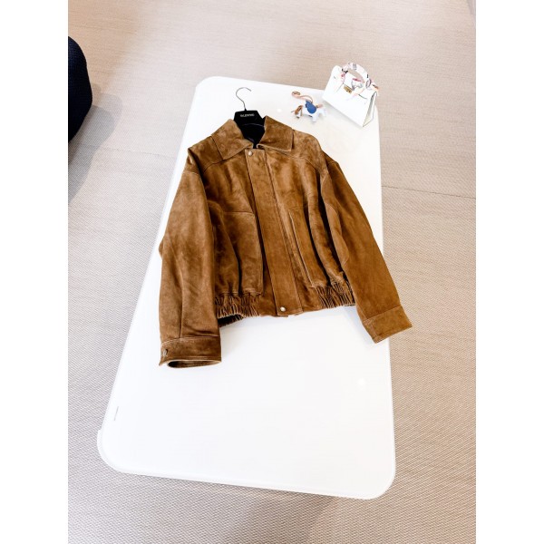 SLP 생로랑 26S 스웨이드 골드 브라운 파일럿 집업재킷 고품격 스웨이드로 부드럽고 질감이 좋은 클래식한 파일럿 핏 터틀넥 지퍼 디자인 투플랩 포켓 빈티지하고 실용적이며 정장 바지에도 잘 어울리는 부드러운 소재 최고 퀄리티 발매