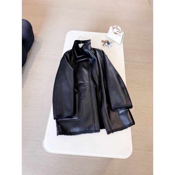 HERMES 26S 리버시블 스웨이드 숄카라 라이더 코트 양면 스웨이드 입체 디자인 겉은 섬세한 양가죽 소재 속은 오리지널 퍼의 질감이 그대로 살아 있는 깊은 순흑색으로 기능성이 뛰어나 착용감이 좋으면서도 따뜻한 스틸로 브랜드의 장인 정신을 표현하였음