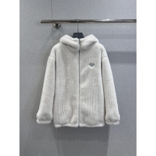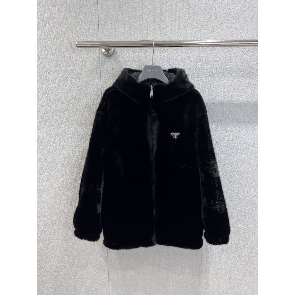 프라다 25FW 가을/겨울 신상 양면 후드 코트 한쪽은 부드럽고 친환경적인 모피로 나른하고 고급스러운 느낌 다른 한쪽은 무광 나일론 원단으로 깔끔하면서도 모던함 후드 디자인은 보온성과 스타일링을 동시에 고려하며 삼각 로고의 숨겨진 디테일로 가을과 겨울의 가벼운 럭셔리함