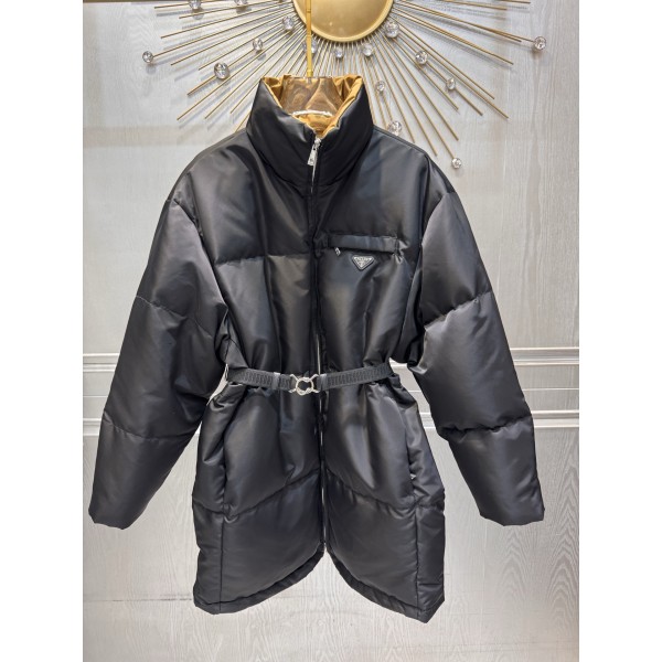 프라다 25 신상 하프 나일론 원단 도톰하고 따뜻한 벨트 패딩
