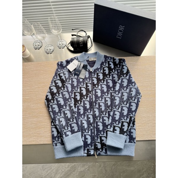 Dior 2025FW 전폭 자가드 니트 가디건 ZP 29000 구매 분해 제작 100% 면 울 소재 맞춤 제작, 전폭 컬러 오블리크 자카드 장식 원단과 어우러지도록 자카드 제작 오픈 몰드 디올 레터링 지퍼 맞춤 제작 시그니처 골지 목선 소매 밑단 맞춤 제작, 초밀도로 부분 짜임 진정한 1:1 copy