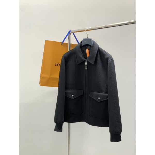 LV 최신 시즌 루이비통 울 혼방 리버시블 블루종 화려한 양면 실크 울 혼방을 소재로 한 블루종 점퍼 안쪽 피쉬넷 자카드 라인으로 클래식한 무드를 완성 스탠다드핏, 양털 99% , 실크 1% 셔츠형 칼라 골지 소매와 밑단, 안쪽 포인트 로고 자가드 양면 직조 공법으로 앞면은 순흑의 고급스러운 질감의 모직으로 촉감이 부드럽고 탱글탱글하며 스타일리시하며 뒷면은 노화가 가득한 피쉬넷 자카드이며 각각의 노화가 대칭을 이루고 있음 직조 과정은 설비의 정밀도와 공수의 소모가 매우 크며 정품과 낮은 품질의 모조품을 구분하는 핵심 장벽 시중 저버전은 울 함량이 부족하거나 촉감이 거칠고 보온성이 떨어지거나 안감 노화가 비뚤어져 자카드 밀도가 희박함 네크라인에서 밑단까지의 패턴 연결은 전혀 편차가 없으며 이는 명품 공예의 극치를 보여줌