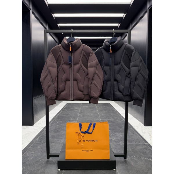 루이비통 2025 새로운 갑풍 하이넥 패딩 점퍼 구스 다운 패딩 극한의 중공업 아이템 쫀쫀하고 부드러운 원단으로 되어 있으며 폴리에스터 라이닝, 패딩 충전 차이나 칼라, 지퍼 여밈, 히든 포켓 소매 시보리, 스판 밑단, 이형 퀼팅 디자인 접착식 로고 레터링 지퍼에 LV문양 지퍼 헤드