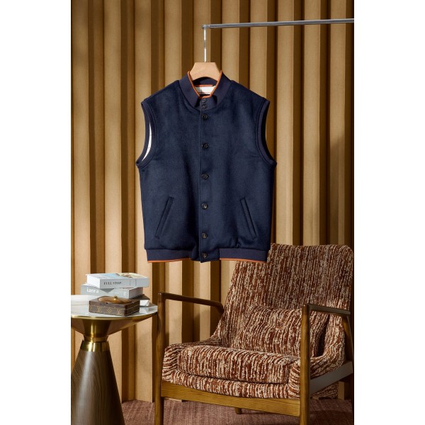 LP 캐시미어 울 혼방 베스트 코트 가볍고 통풍이 잘 되는 소재로 착용감과 따뜻함을 보장하고 슬림함과 핏의 균형을 잡아 캐주얼한 멋을 동시에 느낄 수 있음 차이나 칼라 브론즈 원단으로 포인트를 주어 칼라의 질감과 입체감을 높여주며 단추 디자인도 입고 벗기 편함 고품질 캐시미어 20%를 엄선하여 양모 80%를 혼방하고 전체적인 모양을 더욱 입체적이고 층감 있게 만듬 품질과 디자인 모두 브랜드의 뛰어난 추구를 보여줌