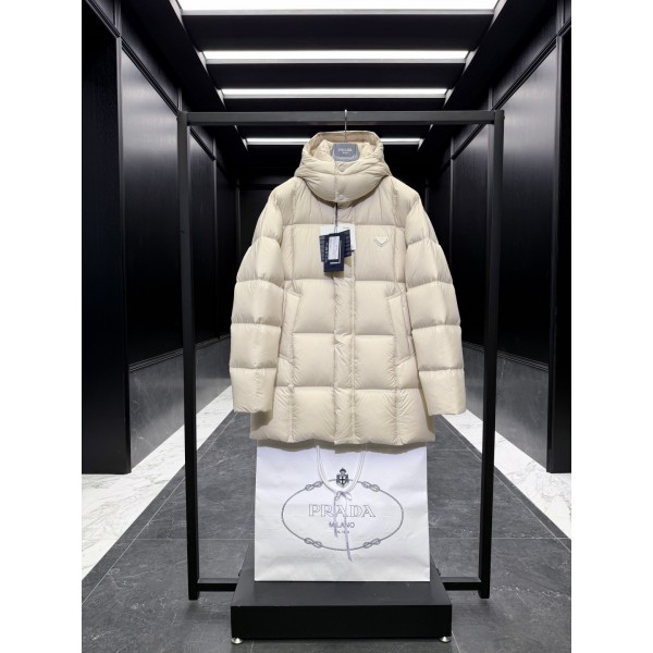 프라다 하프 후드 다운 점퍼 후드 탈부착 가능, 가변 칼라 재킷 기장 입체 컷팅 테크 경량 찢김 방지 원단 구스다운 충전 + 순정 패키지 금속, 배송 풀옵션 찢김에 강한 소재의 테크니컬한 패딩 점퍼 루즈핏, 소매 스트레이트 커팅
