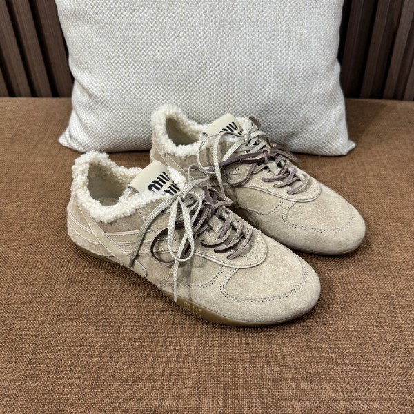 미우미우 가을 겨울 신상 스웨이드 스니커즈 운동화 한 켤레로 보온과 패션을 모두 잡을 수 있음 뒷굽 엠보 로고 로고 디테일로 꽉 앞면: 이태리 커스텀 스웨이드 안감: 호주 수입 램스울 밑창 : 고무몰드 밑창