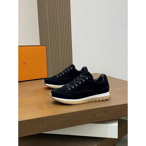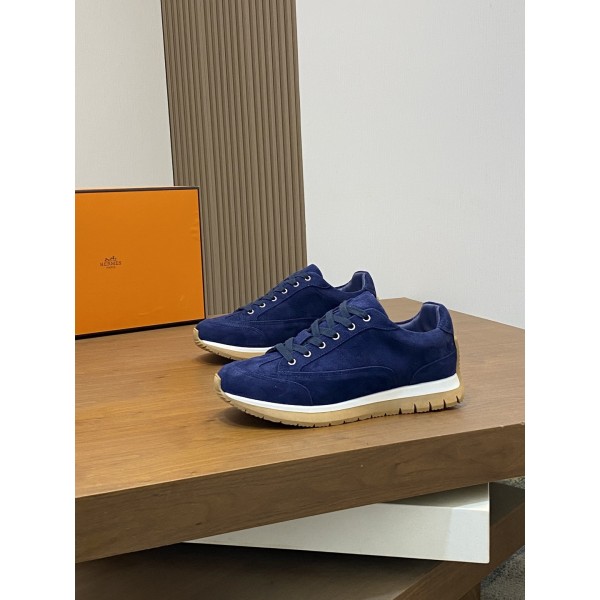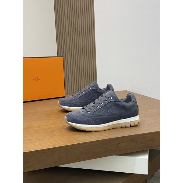 에르메스 남성 캐주얼 스니커즈 신발 표면 수입 송아지 가죽 이음매 층으로 스크럽된 소가죽으로 제작되었으며 수입 소재로 질감이 풍부하고 가벼운 밑창 장식의 컬러 패턴으로 스타일리쉬한 룩을 완성함
